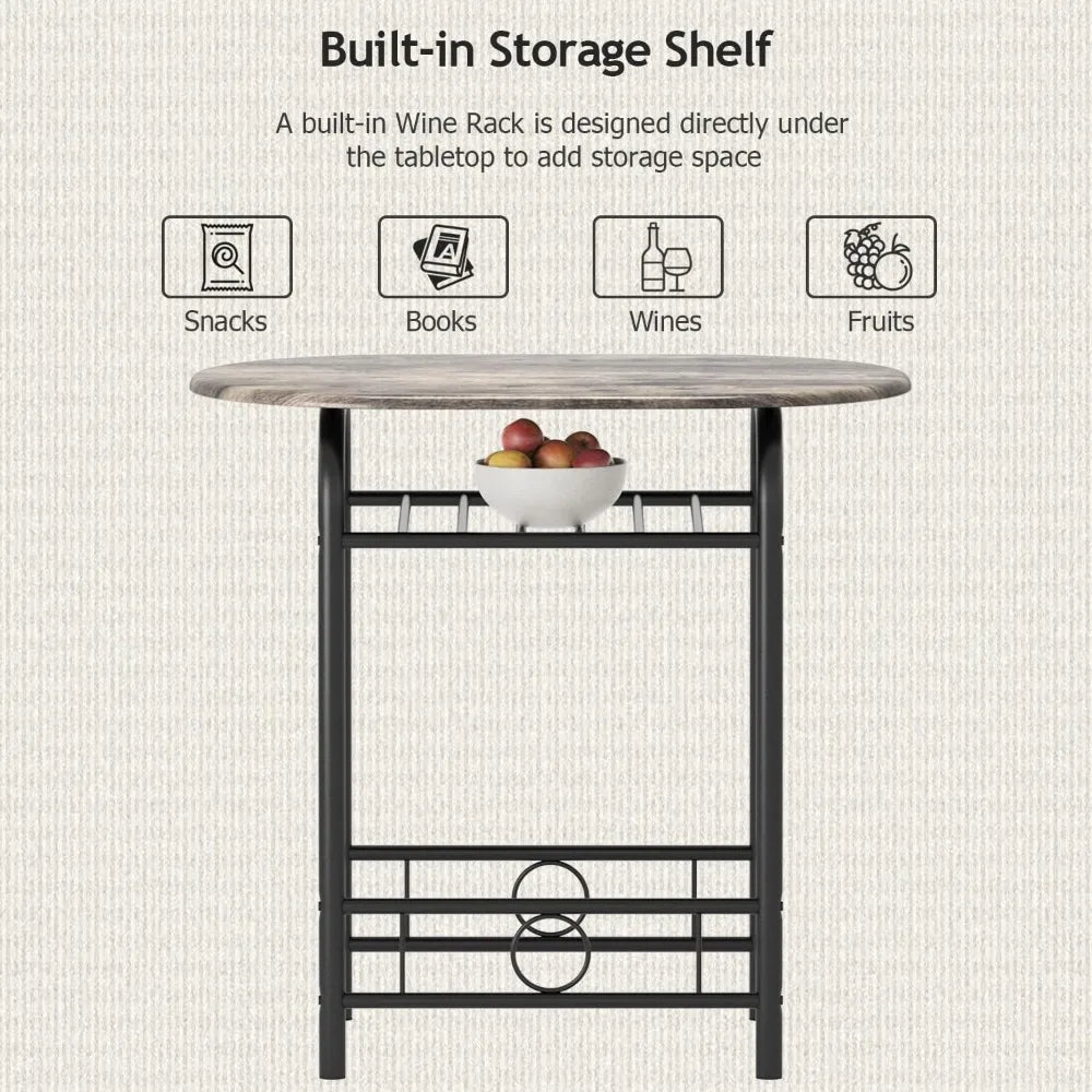 3-Piece Wooden Round Table & Chair Set, Space Saving with Metal Frame