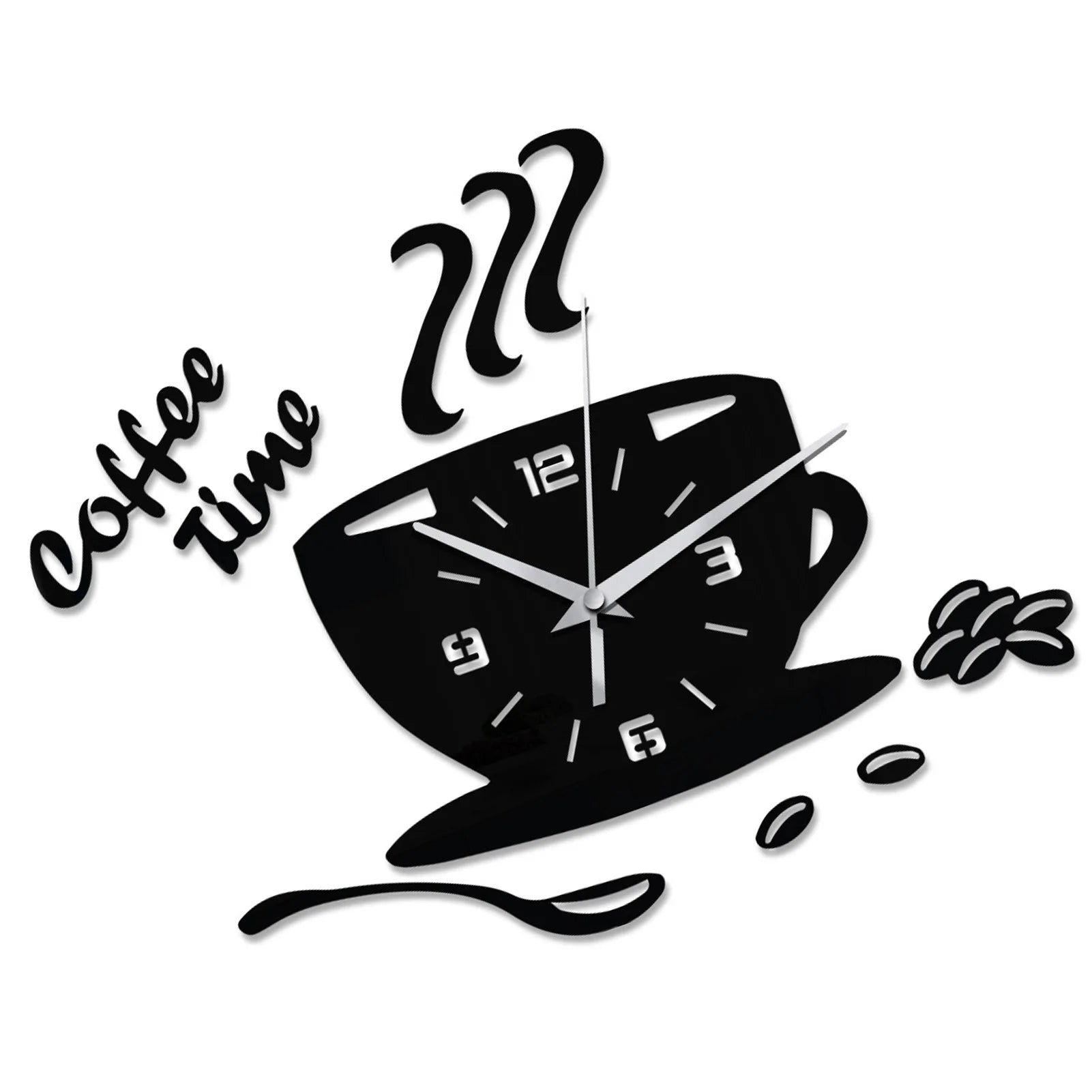 3D Mirror Coffee Cup Shaped Wall Clocks Modern Design, DIY