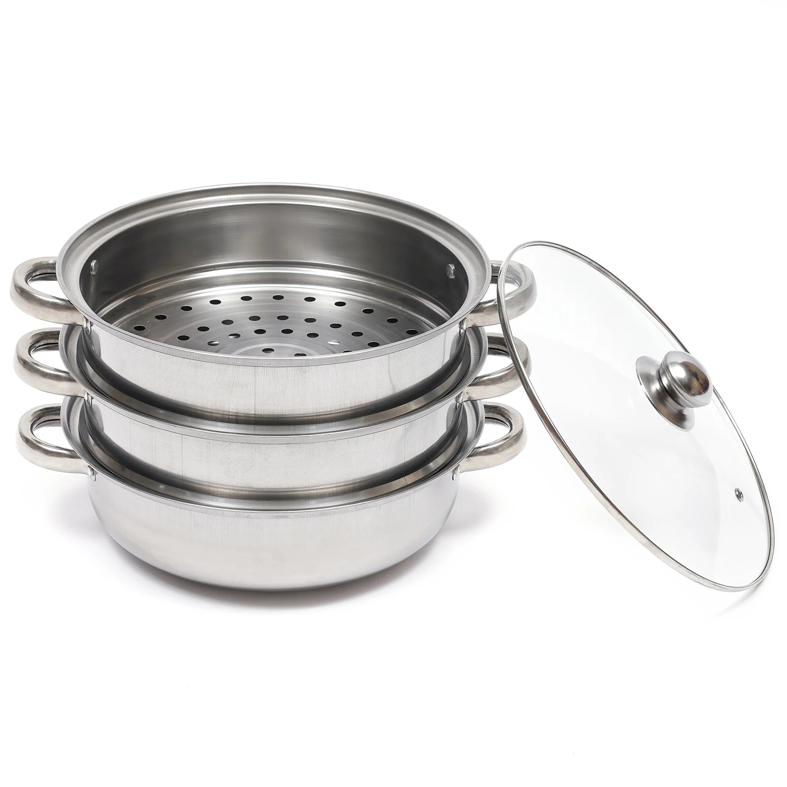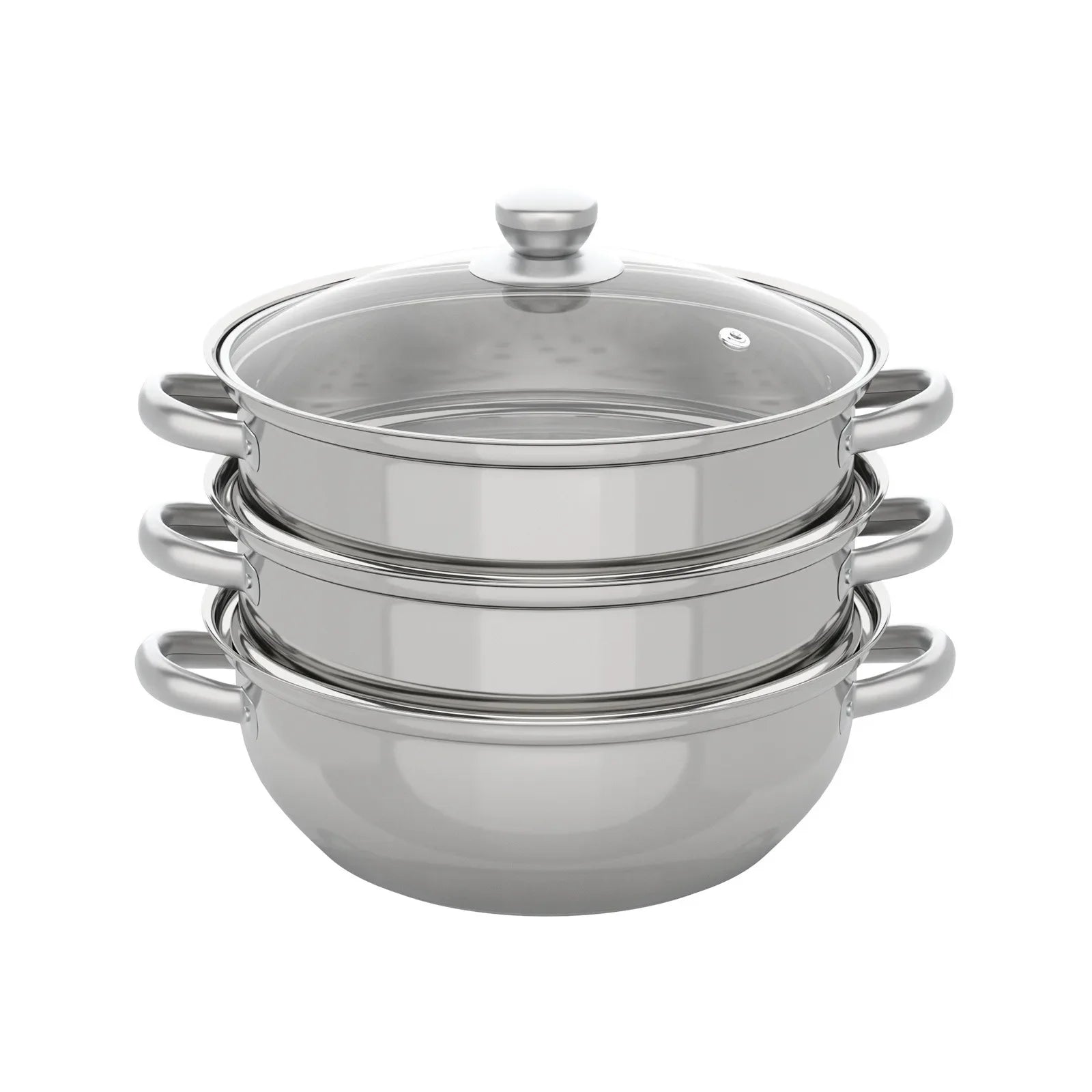 Steamer Cooker 3 Tier Steam Pot KIT Stainless Steel Kitchen Cookware Hot Pot + Glass Lid